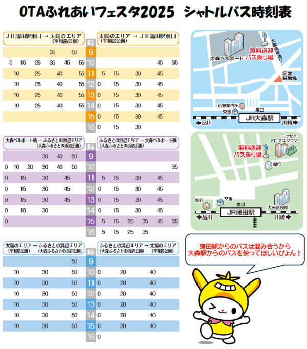 今年もJR蒲田駅及びJR大森駅付近からシャトルバスを運行します。