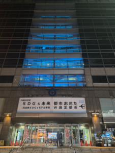 今年度、大田区でも手話言語の国際デーにともない、大田区内5か所をブルーライトアップしました。