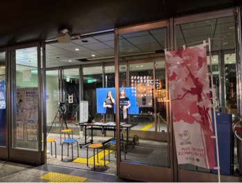今年はデフリンピックの機運醸成のため、特別企画として1階正面玄関に大型モニターを設置しました。