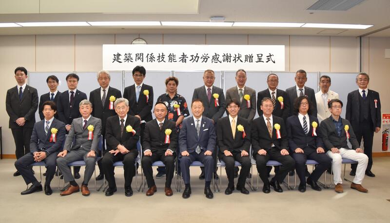 優れた技能を有した建築関係技能者16名の方に感謝状を贈呈しました。