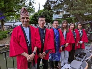 8月17日、糀谷地区福祉施設にて、「第11回 福祉のまち糀谷 夏のおまつり」が行われ、チェン イェンシンさん、ルナルディ マッシャド マリア フェルナンダさん、ララ エルナンデズ ホルヘ マリオさん、アザド モハマド アブル カラムさん、パトリシア インドリ エリさんの5名の国際都市おおた大使が参加しました。打ち水や花火、盆踊りなど日本の夏の文化に触れることができ、地域の方とも交流することができました。