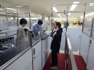 9月27日、羽田空港にて、「やさしい日本語でめぐる入国審査官体験ツアー」が行われ、国際都市おおた大使のルナルディ マッシャド マリア フェルナンダさんと国際交流員のマヤ・ジョーンズさんが参加しました。二人は入国審査模擬体験における外国人旅行者役となり、参加した小学生と交流を行いました。