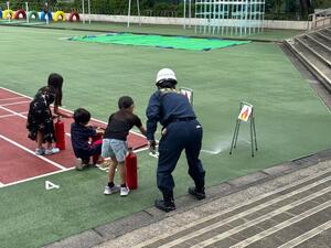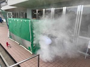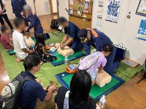訓練では煙体験、AED訓練、初期消火訓練、自助・共助の意識を高めるためのDVD視聴が行われました。参加された方々は真剣に説明を聞き、積極的に各訓練に参加していました。また、参加者には防災食や災害対策グッズが配布されました。