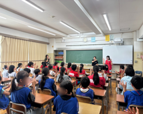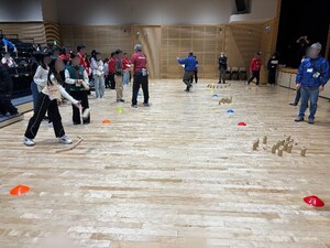 講義中は集中して話を聞き、実践講習では楽しそうに参加している様⼦が⾒られました。