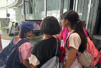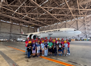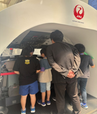 ⽻⽥空港で管制塔、格納庫、消防⾞⾒学を⾏いました。 普段⾒られないような施設の⾒学や体験ができ、とても夢中になっていました。