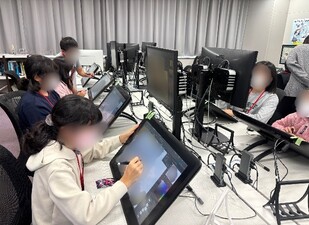 イラスト体験、映像制作体験では、元ある画像をPCソフトで編集し、唯⼀無⼆の作品を作ることができました。