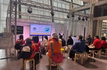 受講⽣は様々な展⽰に興味津々になっており、体験型学習も含めて終始⽬を輝かせていました。