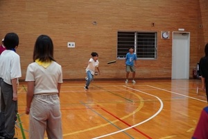 馬込中学校で、午前中はドッヂビーを行いました。ドッヂビーは、相手の陣地にフリスビーを投げ、相手チームのプレーヤーに当て、アウトにさせるというドッジボールのようなゲームです。アクティビティを通して、様々な仲間と交流することができました。