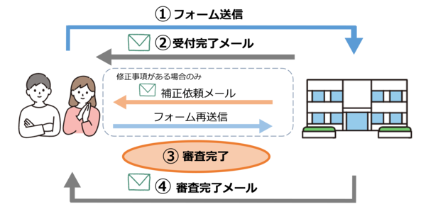 下の図を参考にして、オンライン手続きを行ってください。