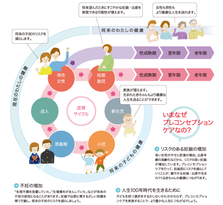 プレコンセプションケア(Preconception care)とは、若い男女が将来のライフプランを考えて、日々の生活や健康と向き合うことです。