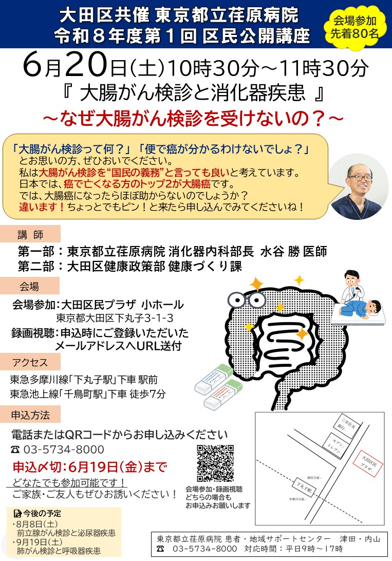 東京都立荏原病院による公開講座「大腸がん検診と消化器疾患」を開催します