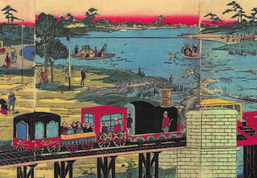 昇斎一景「六合陸蒸気車鉄道之全図」明治4年(部分)/当館所蔵