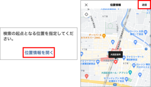 6. 起点とする場所を設定し、画面右上の「送信」を押します。