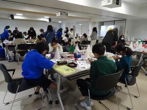 委員さんや中学生のボランティアの皆さんと一緒にすてきなクリスマス飾りを作ります。