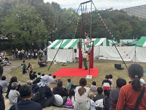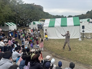 緑のエリアでは、多種多様な大道芸ショーを披露いたしました。