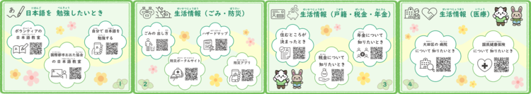 外国人区民の方が必要とする生活情報を二次元コードでまとめた、蛇腹式のカードです。
