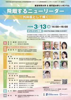 東京科学大学・順天堂大学シンポジウム「飛翔するニューリーダーの姿 ~外科医として輝く~」開催のお知らせ