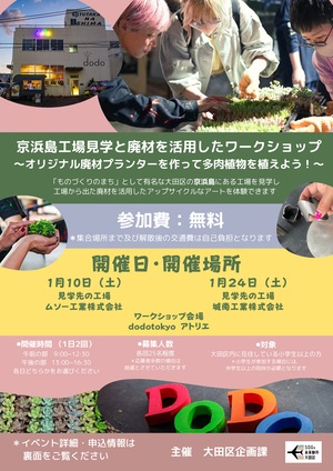 京浜島工場見学と廃材を活用したワークショップの参加者募集について