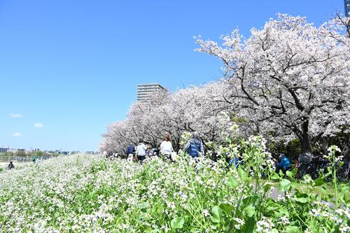 大田区では、区内各地の桜が満開を迎え、多くの方でにぎわっています。区内の大森ふるさとの浜辺公園や多摩川沿いでは、淡いピンクの花が咲き誇り、訪れた人たちは写真を撮ったり、ゆっくりと散策を楽しんでいました。暖かな陽気に恵まれたこともあり、お花見を楽しむ方や、ランドセル姿の新一年生の姿も見られました。大田区各地で桜を観察できるスポットが多くあります。春本番を迎えた大田区。今が見頃となっておりますのでぜひ近くの桜を見に行ってみてください!