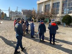 令和7年12月7日(日曜日)、大森第一中学校で学校防災活動拠点訓練を実施しました。この訓練は森ヶ崎自治会と大森第一中学校で構成する大森第一中学校防災活動拠点本部が主催し、大森消防署森ケ崎出張所及び大森消防団第一分団の協力のもと46名の方が参加しました。