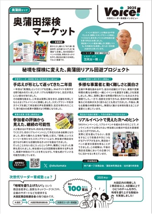 実践形式で商店街イベント運営等のノウハウやスキル向上を目指し、若手参加者同士の良質なネットワーク形成を図るプラットフォームです。