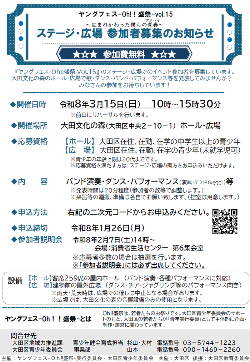 ヤングフェス-Oh!!盛祭- 各コーナーの申し込みについて