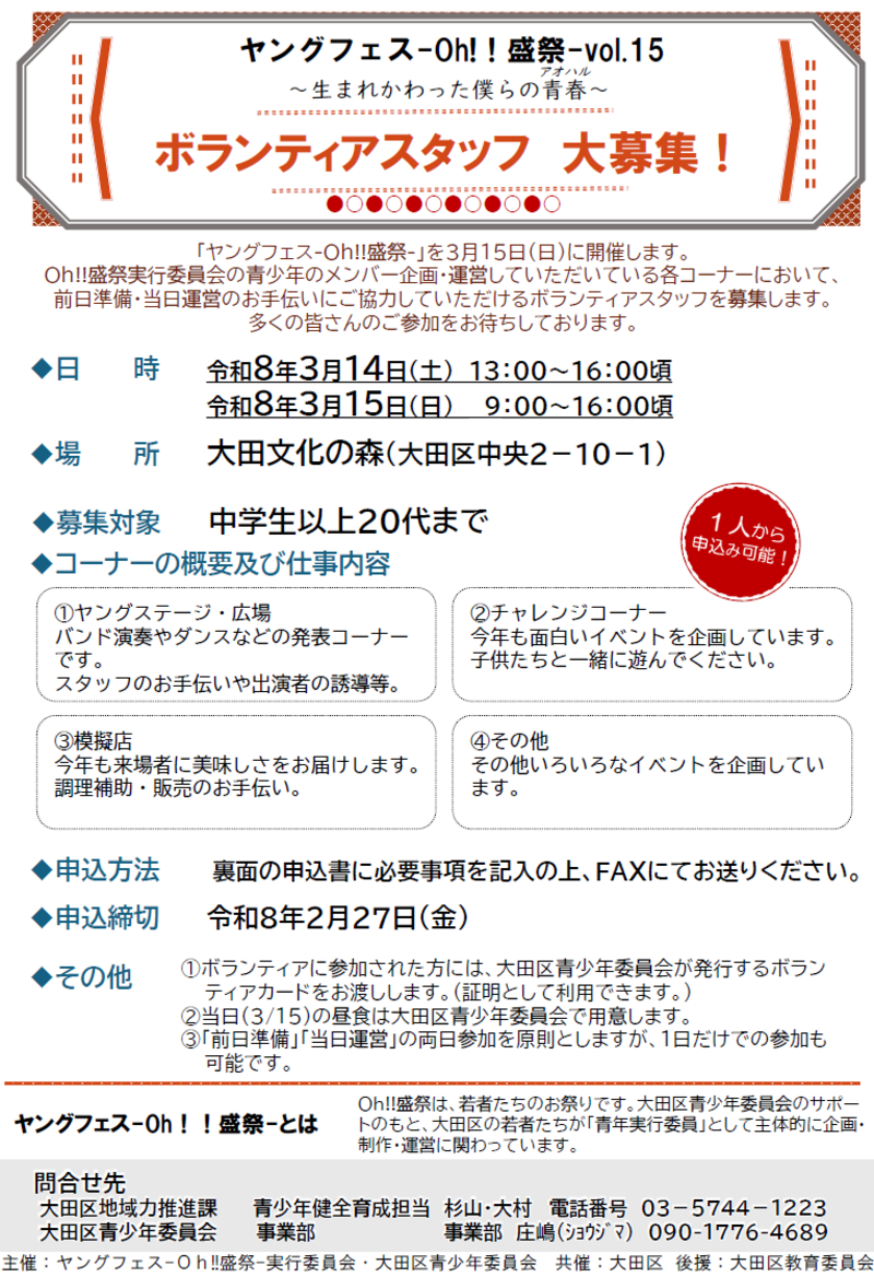 ボランティアスタッフ 令和8年2月27日(金曜日)締切
