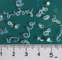 アニサキスは寄生虫の一種です。体長2~3cm、幅0.5~1mm程の大きさで白色の糸のような見た目をしており、渦巻き状になっていることが多いです。サバ、アジ、サンマ、カツオ、イワシ、イカなどの魚介類の内臓表面などに多く寄生していますが、筋肉部位に入り込むこともあります。