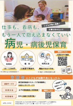 大田区病児保育送迎事業を大田区内3つの施設で実施しています。