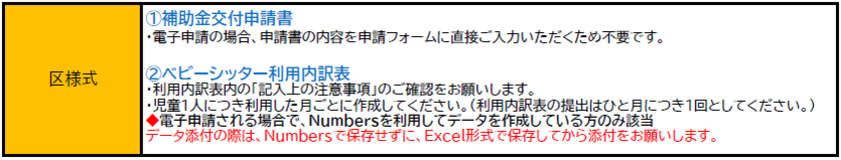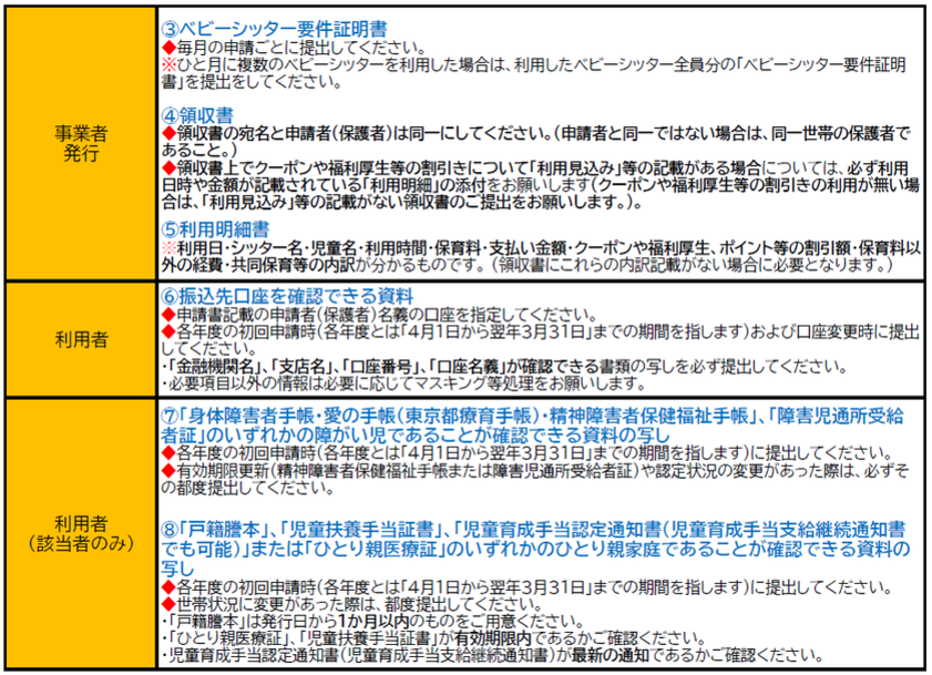 ・原則としてベビーシッターを利用した月の翌月締切期限までに提出してください。