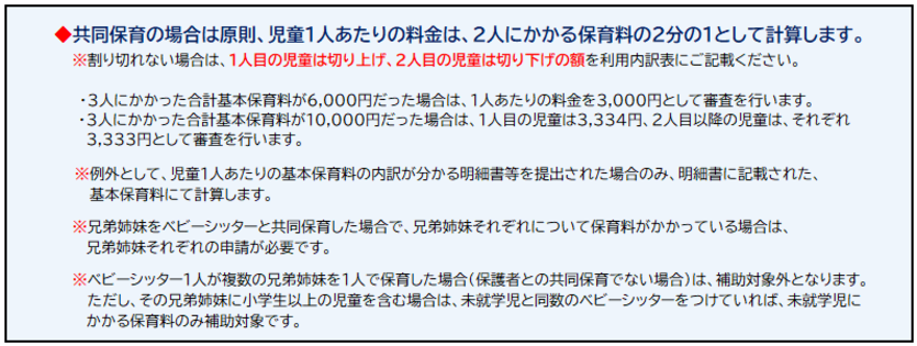 (2)共同保育利用時の保育料の計算方法について