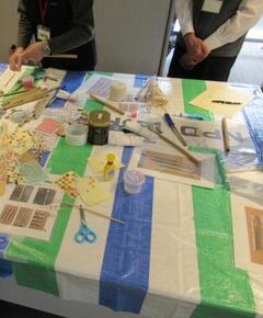 (2)ワークショップを楽しんだあと、出展団体の方にインタビューをします(一部対応できないブースがあります)。