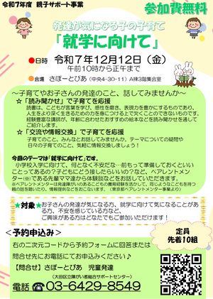 親子サポート事業『発達が気になる子の子育て』を開催します!